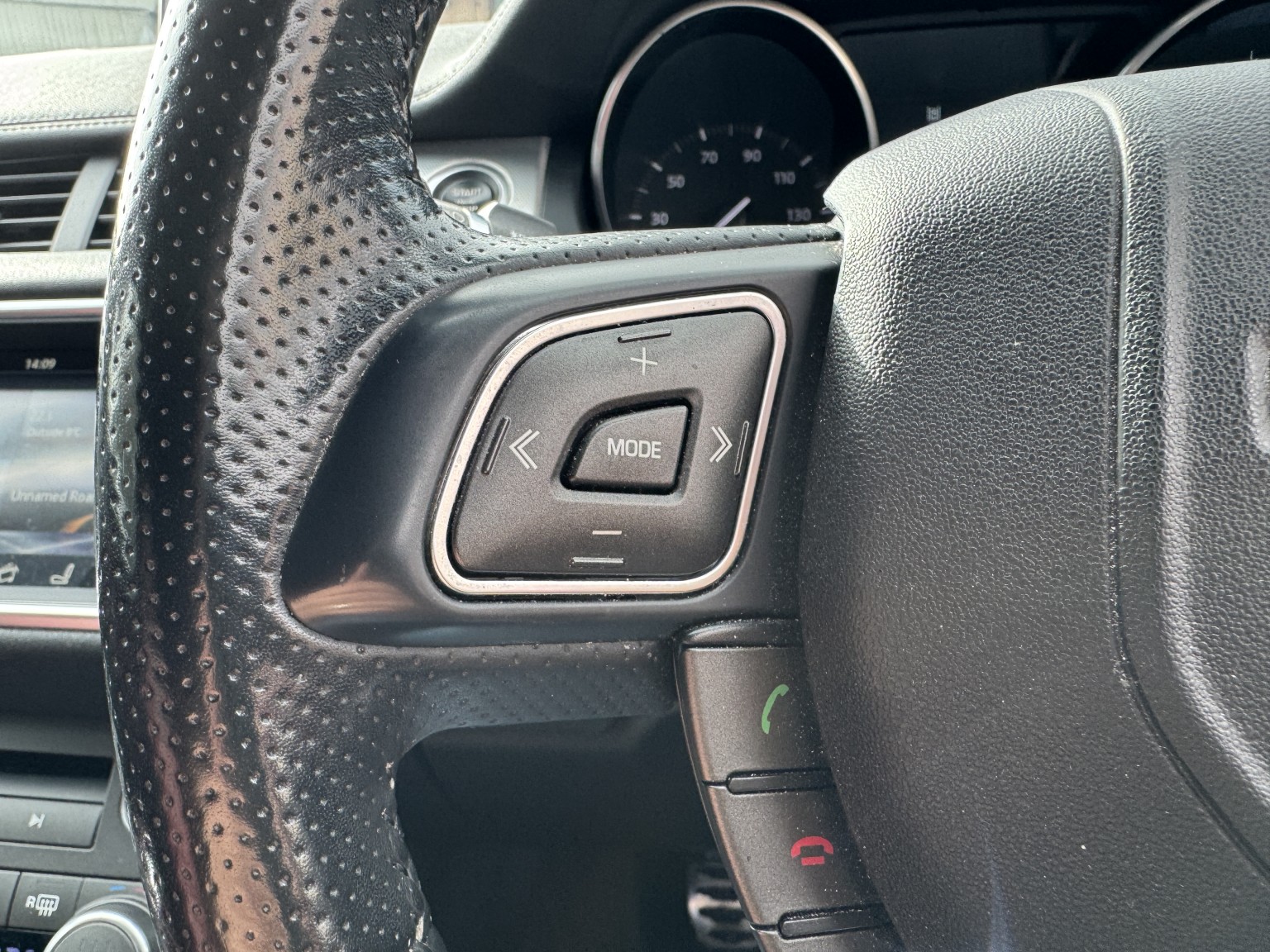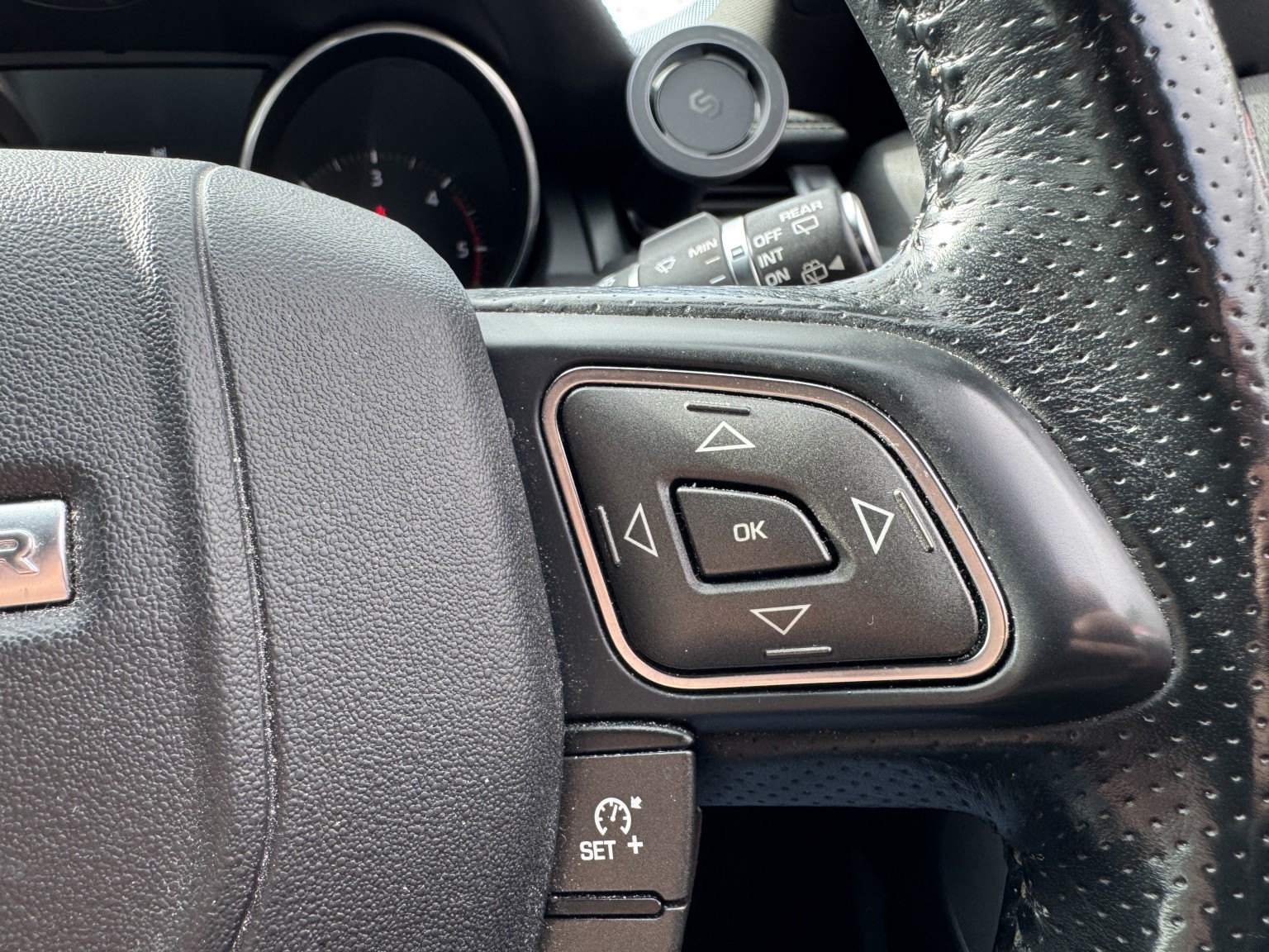 Perforated Oxford Leather Steering Wheel with Audio Controls and Cruise Control